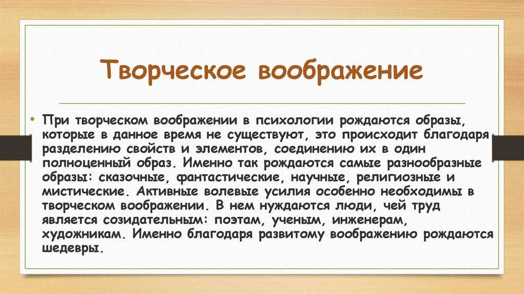 Воображение, как и любая функция, нуждается в тренировке. Одним си способов развития воображения является творчество. Именно когда мы играем на музыкальном инструменте, рисуем или танцуем — наше воображения работает на все сто процентов.