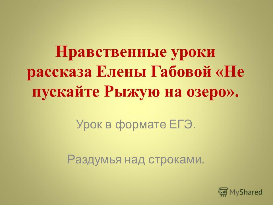 Презентация по предмету «ЕГЭ» на тему: «Нравственные уроки рассказа Елены Габовой «Не пускайте Рыжую на озеро». Урок в формате ЕГЭ. Раздумья над строками.». Скачать бесплатно и без регистрации. — Транскрипт: