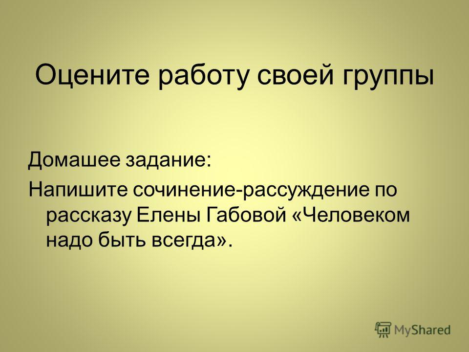 Оцените работу своей группы Домашее задание: Напишите сочинение-рассуждение по рассказу Елены Габовой «Человеком надо быть всегда».