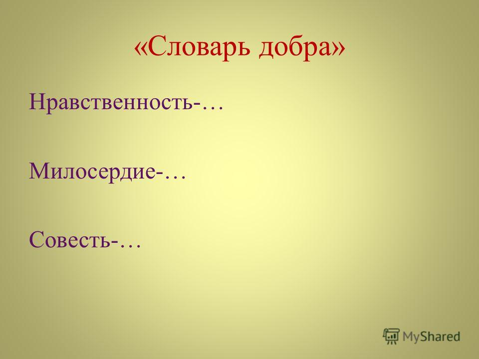 «Словарь добра» Нравственность-… Милосердие-… Совесть-…