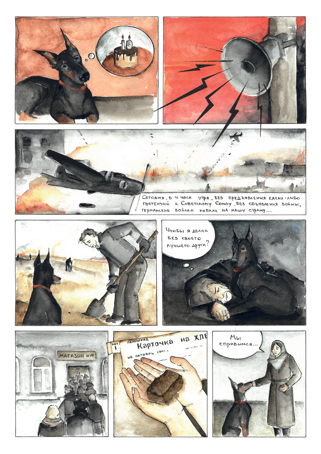 В моем рассказе один из главных героев — художник. Фамилии нет, только имя и отчество — Петр Петрович. Перед началом и во время работы над созданием рисованной истории я изучила много информации о войне и блокадном Ленинграде, и мне настолько глубоко все это вошло в душу, что я начала искать реального прототипа этого художника. Он же был, значит, и работы его остались. Все безрезультатно, я ничего не нашла, но надежда была. Сроднилась я со своими героями.