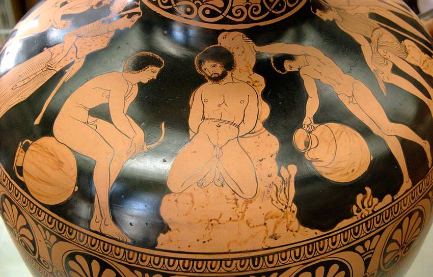 Царь Амик, связанный аргонавтами. Гидрия из Лукании, IV в. до Р. Х.