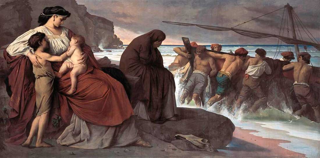 …Всеми забытый и покинутый, долго скитался Ясон по разным странам. Однажды странствия привели его на берег моря, где стоял полуразрушенный временем «Арго». Ясон прилег отдохнуть в тени «Арго», но обветшавший корабль рассыпался, и Ясон погиб под его обломками.