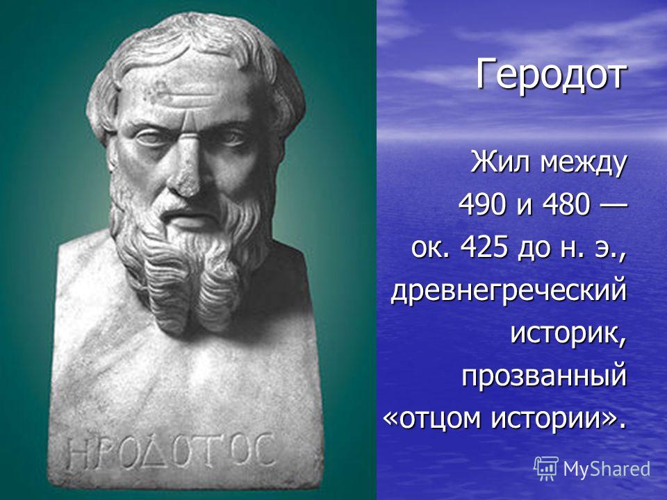 Геродот Жил между 490 и и 480 ок. 425 до н. э., древнегреческийисторик,прозванный «отцом истории».