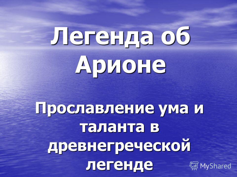 Презентация на тему: » Легенда об Арионе Прославление ума и таланта в древнегреческой легенде.» — Транскрипт: