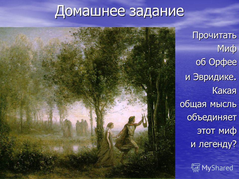 Домашнее задание Прочитать Миф об Орфее и Эвридике. Какая общая мысль объединяет этот миф и легенду?