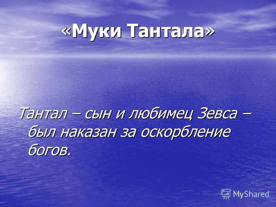 «Муки Тантала» Тантал – сын и любимец Зевса – был наказан за оскорбление богов.