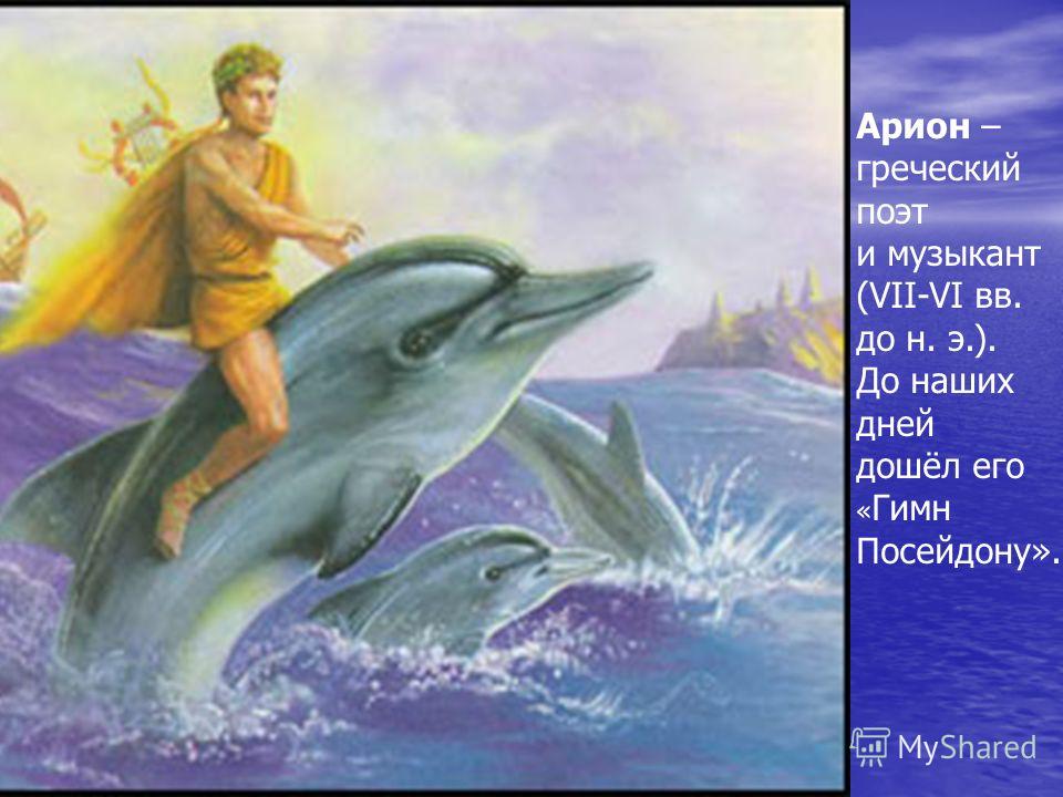 Арион – греческий поэт и музыкант (VII-VI вв. до н. э.). До наших дней дошёл его « Гимн Посейдону».