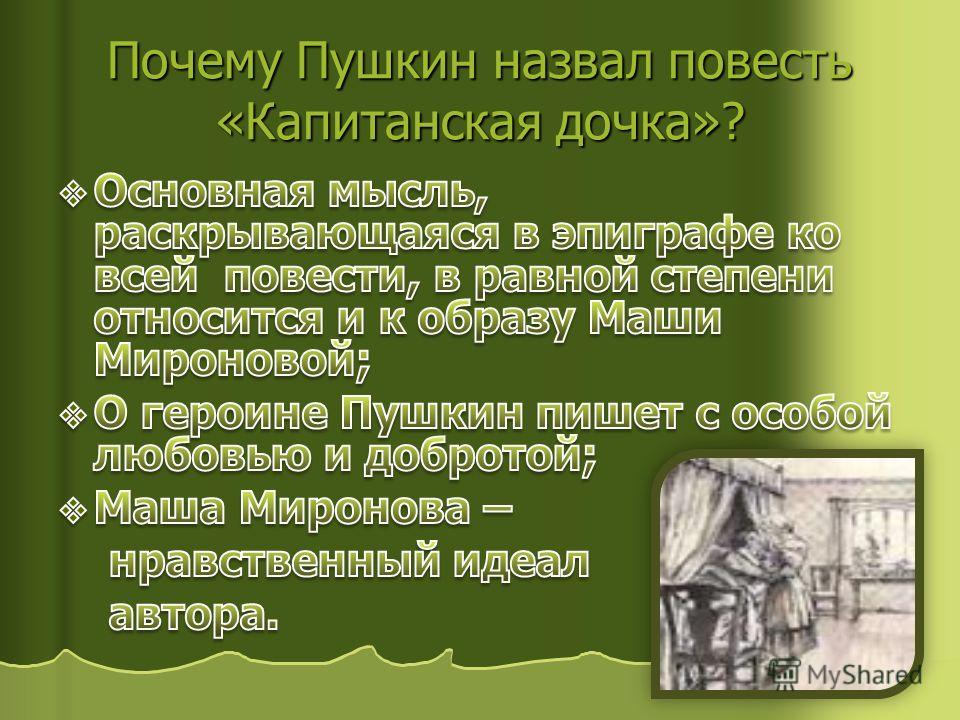 Почему Пушкин назвал повесть «Капитанская дочка»?