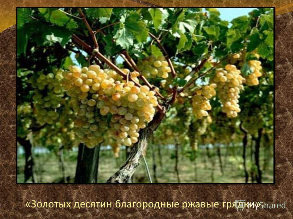 В описании виноградника Мандельштам одновременно использует метафору и сравнение, утверждая, что виноград живёт, как старинная битва, и метафорически описывая виноградник. В начале 20 в. виноград сажали в шахматном порядке в виде отдельных кустиков, каждый напоминал горбатый круп лошади, на котором сидит кудрявый всадник. Коричневый сад и ржавые грядки – точное описание виноградников Крыма, в которых коричневые грунты оставляли чистыми, выпалывая растительность.