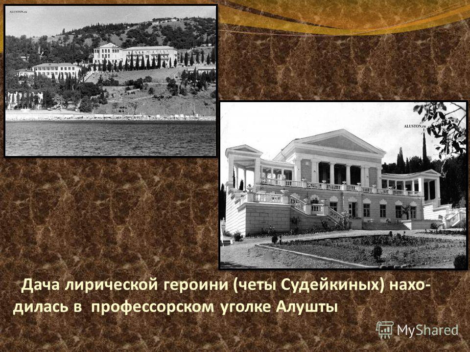 Дача лирической героини (четы Судейкиных) находилась в профессорском уголке Алушты