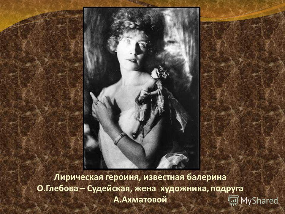Лирическая героиня, известная балерина О.Глебова – Судейская, жена художника, подруга А.Ахматовой