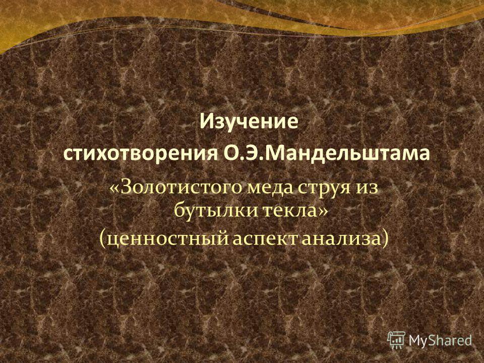Презентация на тему: » Изучение стихотворения О.Э.Мандельштама «Золотистого меда струя из бутылки текла» (ценностный аспект анализа)» — Транскрипт: