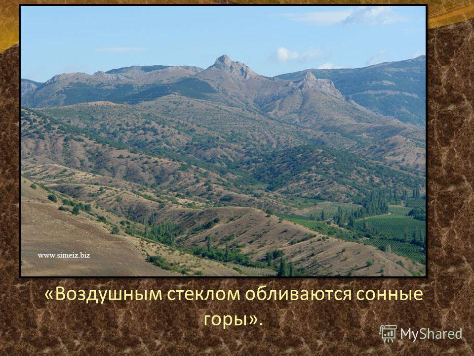 Метафоры стихотворения рождают чёткие зрительные образы: сонные горы обливаются воздушным стеклом (марево над горами в жару),