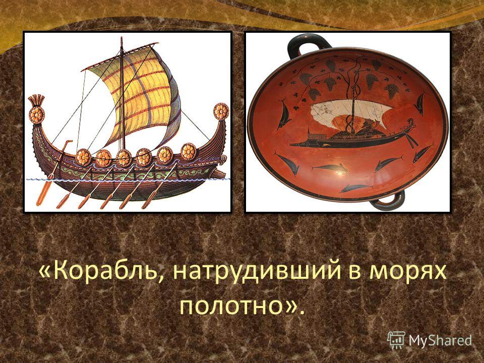 Метафоры последней строфы важны для общей идеи стихотворения. Корабль Одиссея, натрудивший в морях полотно (след, путь корабля), связывается с полотном, которое пряла Пенелопа. Оба эти полотна – материальное выражение времени и пространства, наполненным которыми вернулся Одиссей (метафора).