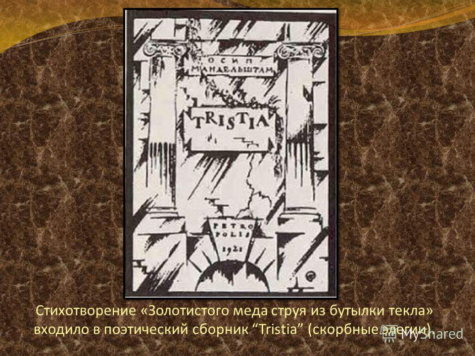 Стихотворение «Золотистого меда струя из бутылки текла» входило в поэтический сборник Tristia (скорбные элегии).