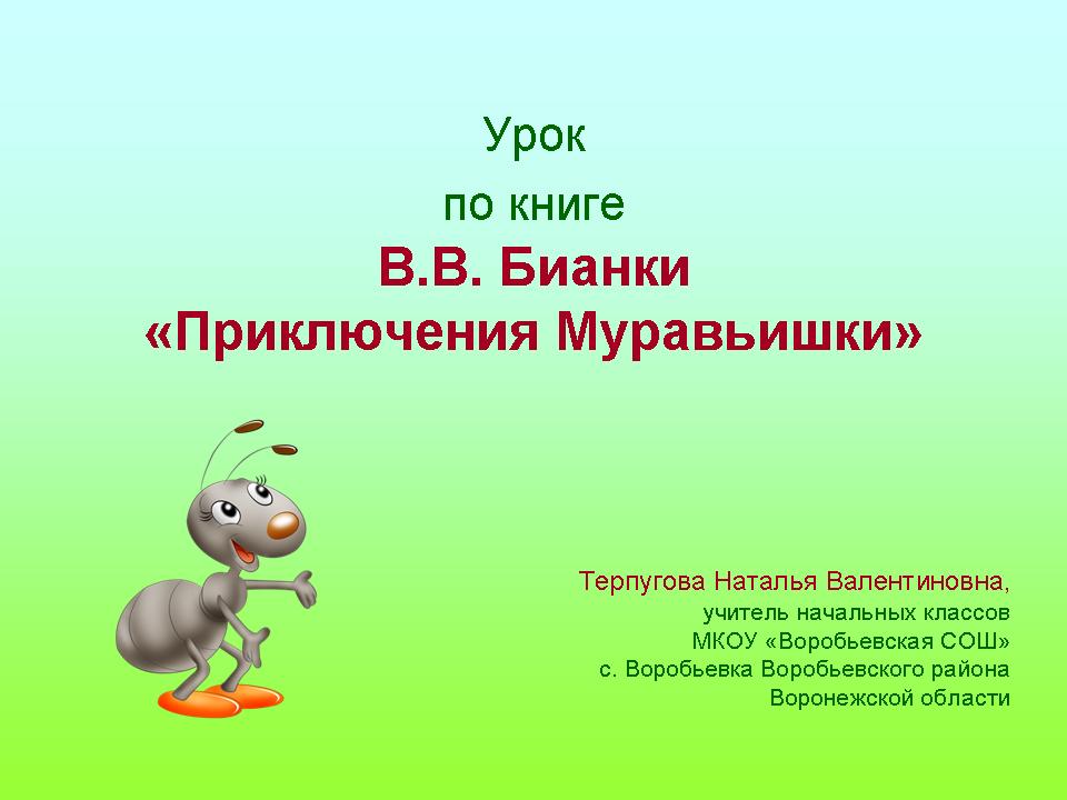 В основном все рассказы Виталия Бианки посвящены природе и животным, рассказ «Приключения муравьишки» как раз такой.