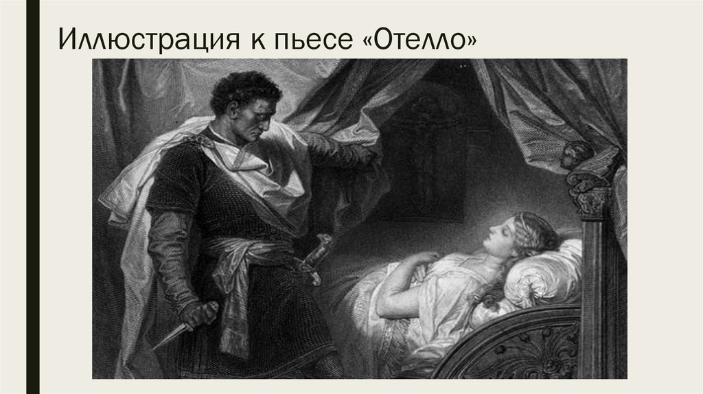 - Изображение — В частности, образы животных, например, Яго представляет Отелло как «черного барана» (1.1.97), а Дездемону, напротив, как честную и скромную «белую овцу» (1.1.98).