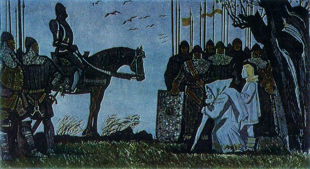 Сказал старик-отец: «Я вижу, что толку нет противиться. Но прежде чем я открою тебе тайну, ты должен выполнить одно условие». «Какое?» — поинтересовался король. «Выполнишь ли ты его?» — отвечал старик вопросом на вопрос. «Да, — сказал король, — моему слову ты можешь верить». Старик-пикт сказал: «Никогда бы не хотел я стать виновником смерти своего сына. Но сейчас я желаю его гибели, и секрет верескового меда готов рассказать только после его смерти».
